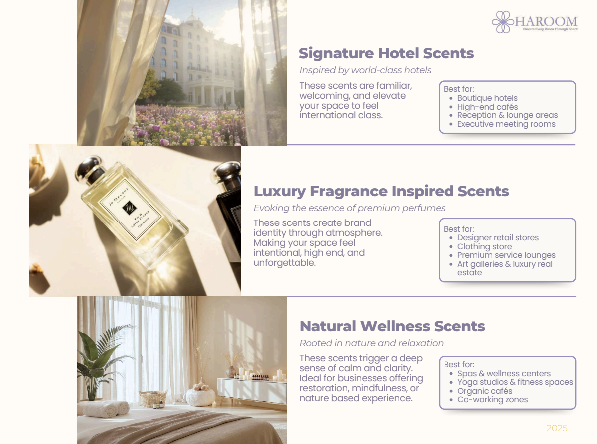 From choosing the right machine to selecting the perfect scent for your space. Haroom makes scent branding simple.